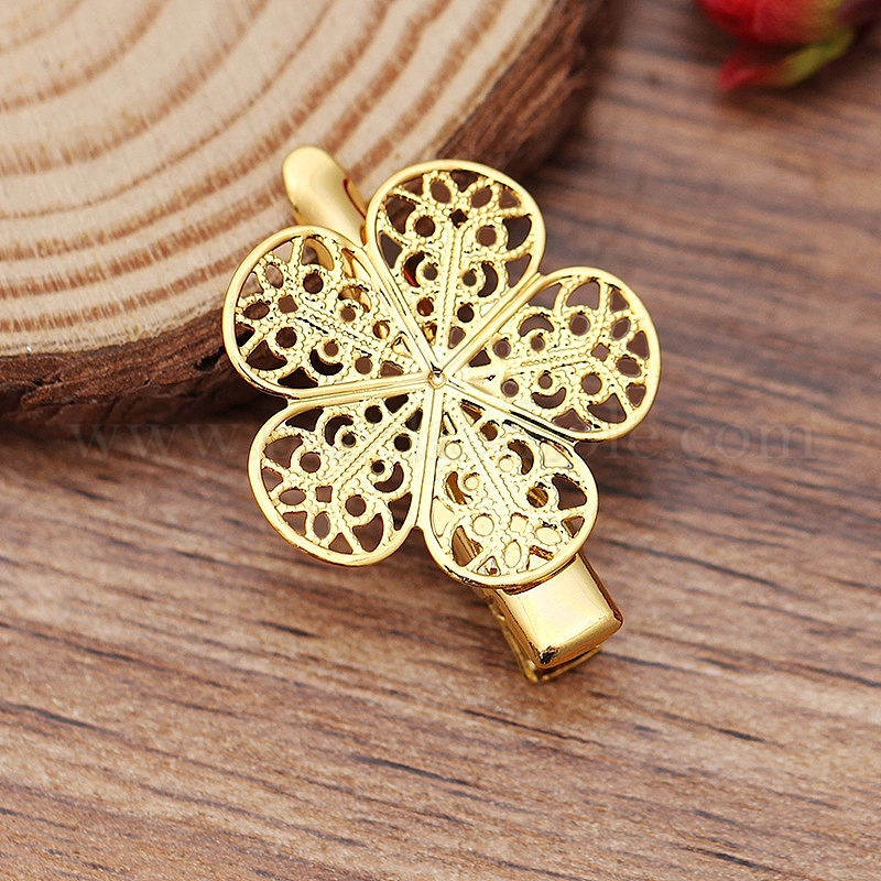 Желехная фурнитура заколки , с настройками передних панелей латуни филигрань цветок кабошон