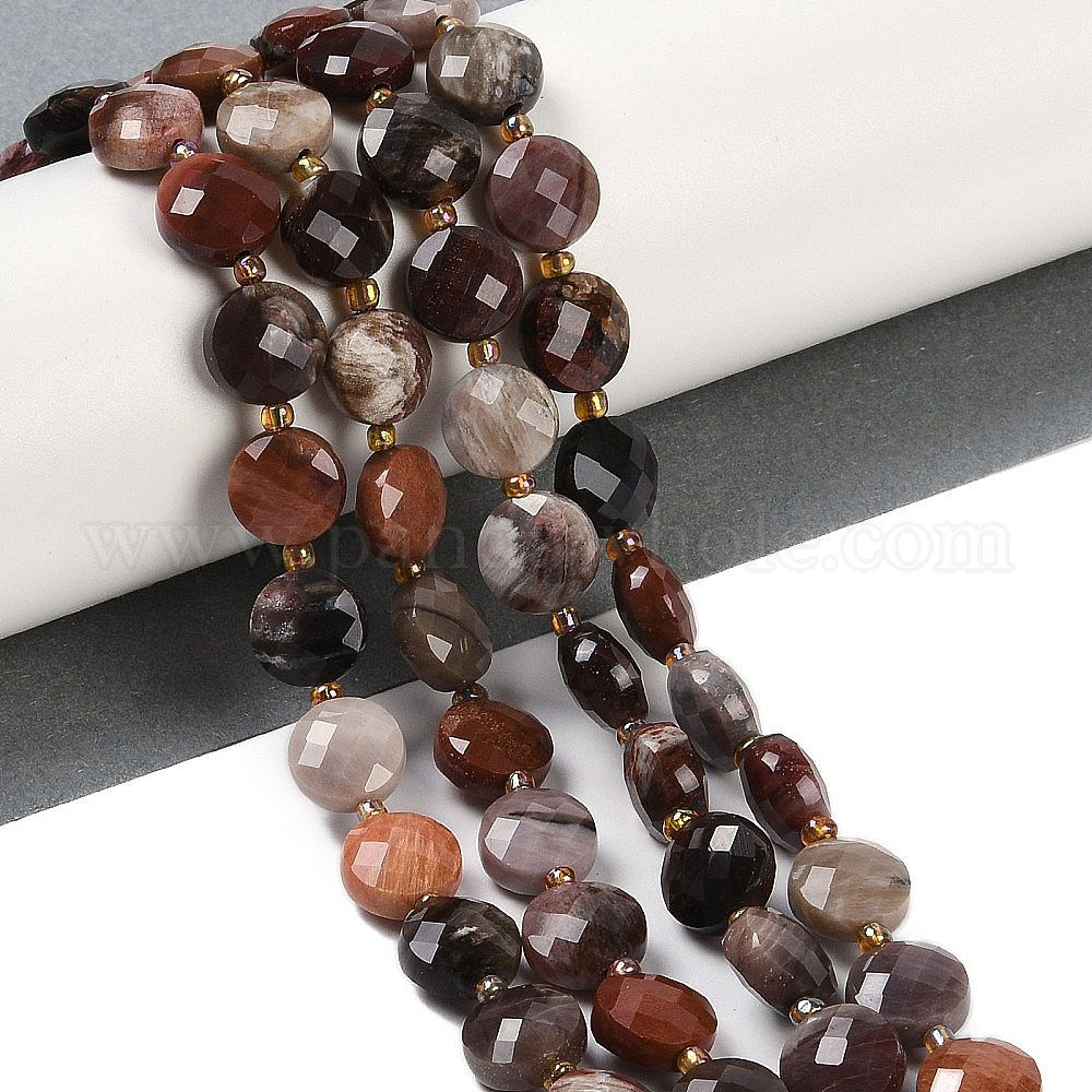 Природные окаменелое дерево бисер пряди, граненые, плоско-круглые, с бисером