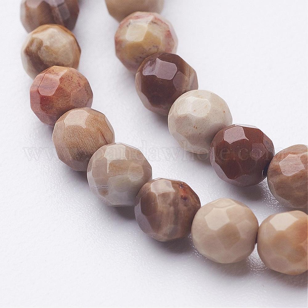 Природные окаменелые нити шарик из дерева, граненый (64 граней), круглые