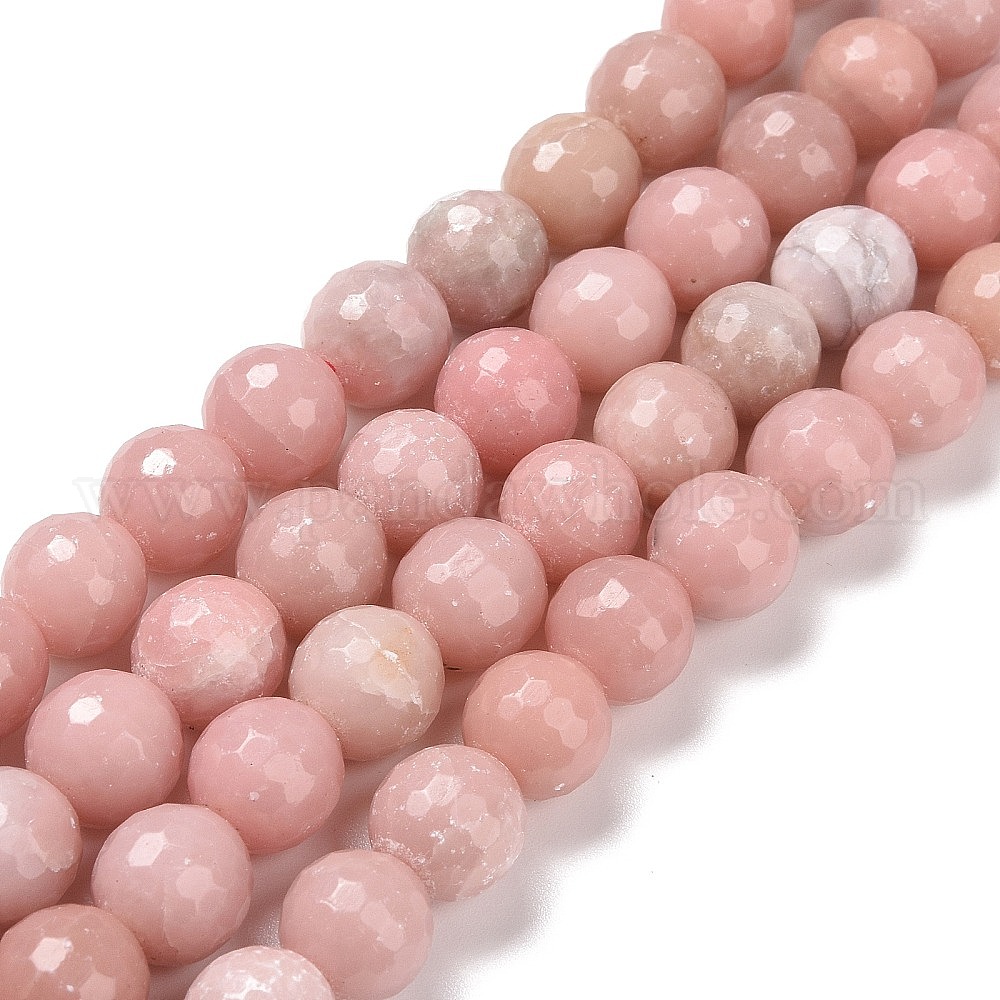 Натуральный розовый опал бусы пряди, граненый (128 граней), круглые