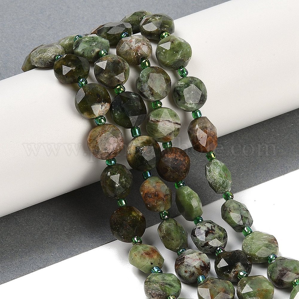 Естественный зеленый опал бисер нитей, граненый пятиугольный разрез, плоско-круглые, с бисером