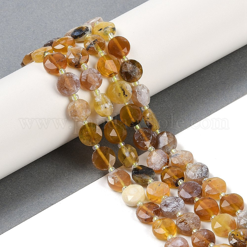 Природные желтые опал бусины пряди, граненый пятиугольный разрез, плоско-круглые, с бисером