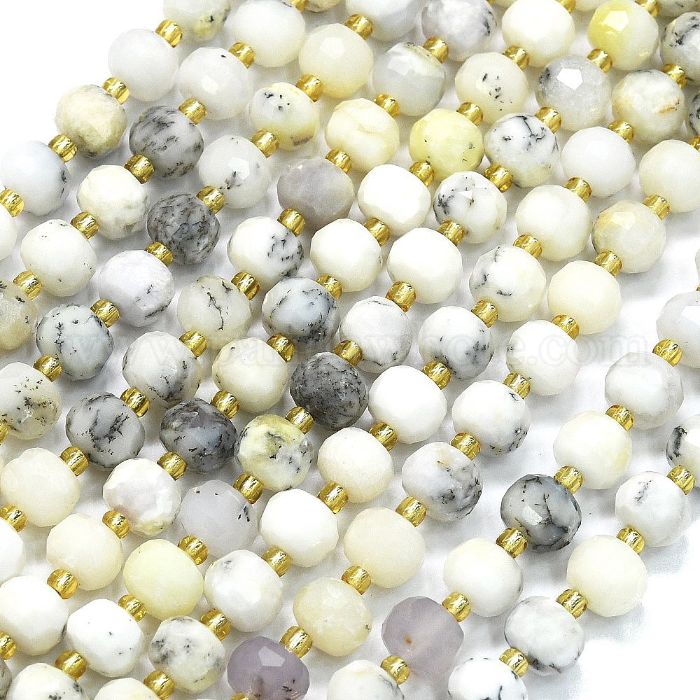 • Белый Опал Натуральный белый опал африканские бусы пряди, с бисером, граненые, фонарь, 8~8.5x6.5~7 мм, отверстие : 0.6 мм, около 44 шт / нитка, 15.16'' (38.5 см)