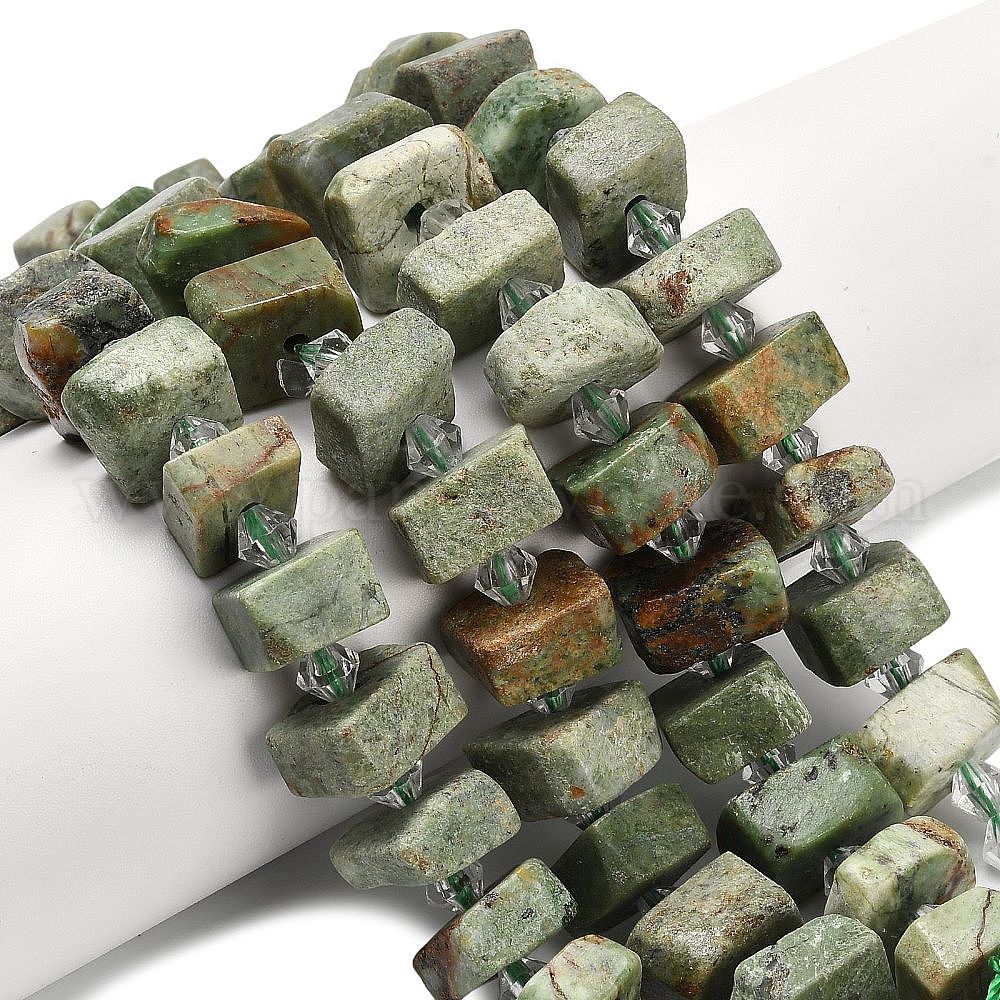 Естественный зеленый опал бисер нитей, самородки, граненые, с пластиковой бисера
