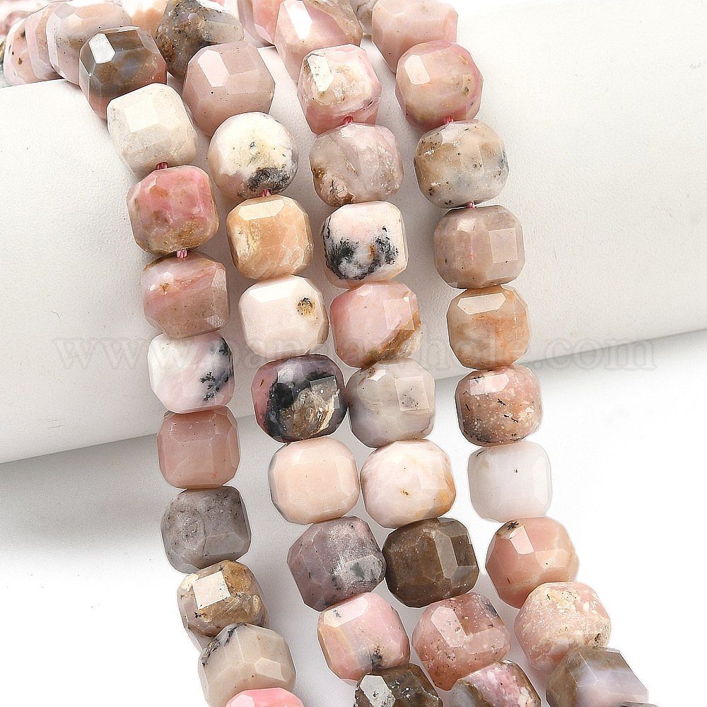 Натуральный розовый опал бусы пряди, граненый стол, вырезанный куб
