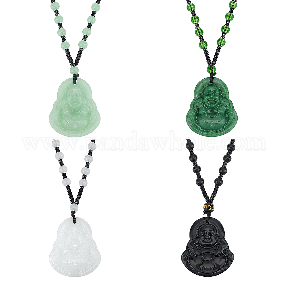 4шт 4 цвета смола имитация драгоценных камней майтрейя будда кулон ожерелья комплект, Ом мани падме хум бисерные буддийские ожерелья для мужчин и женщин