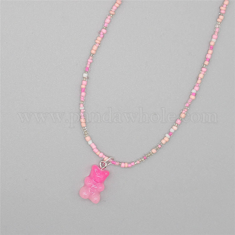 Очаровательное колье из бисера в виде медвежонка с градиентными цветами для девушек в богемном стиле