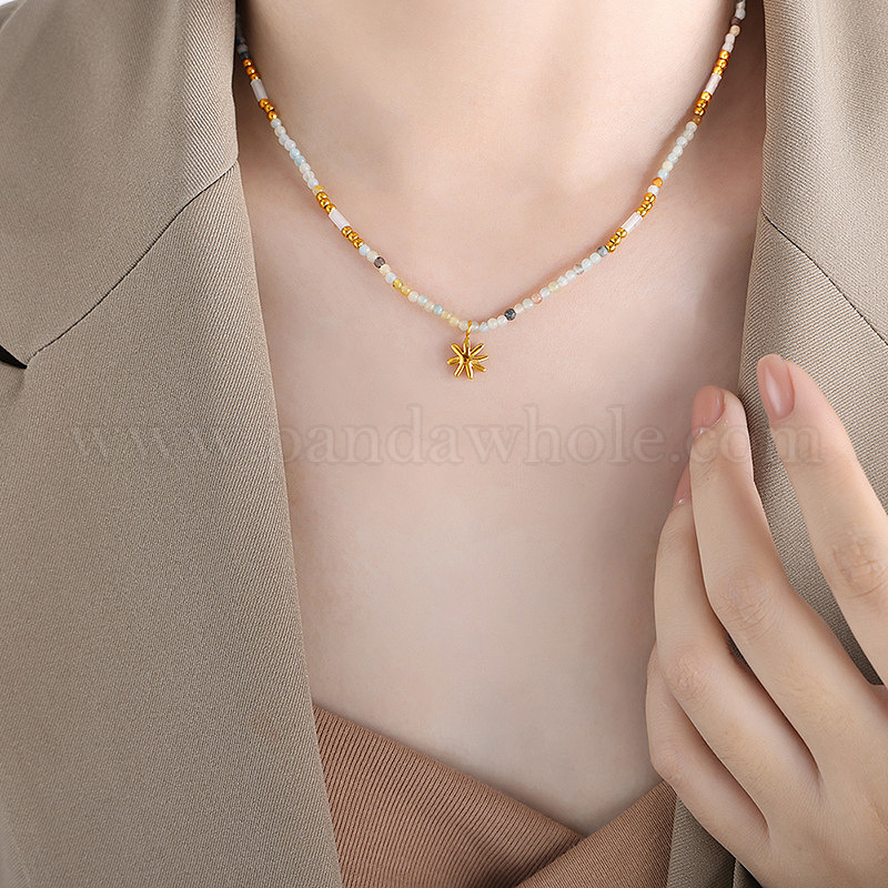 Французский минималистский натуральный камень ручной работы бисер звезда кулон ожерелье из нержавеющей стали