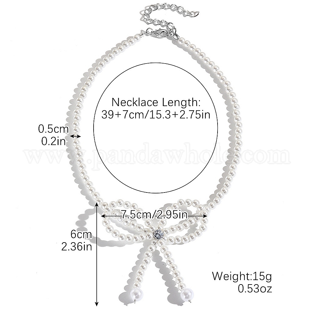 Женские ожерелья из пластика с искусственным жемчугом и микропаве из бисера циркония, бантом