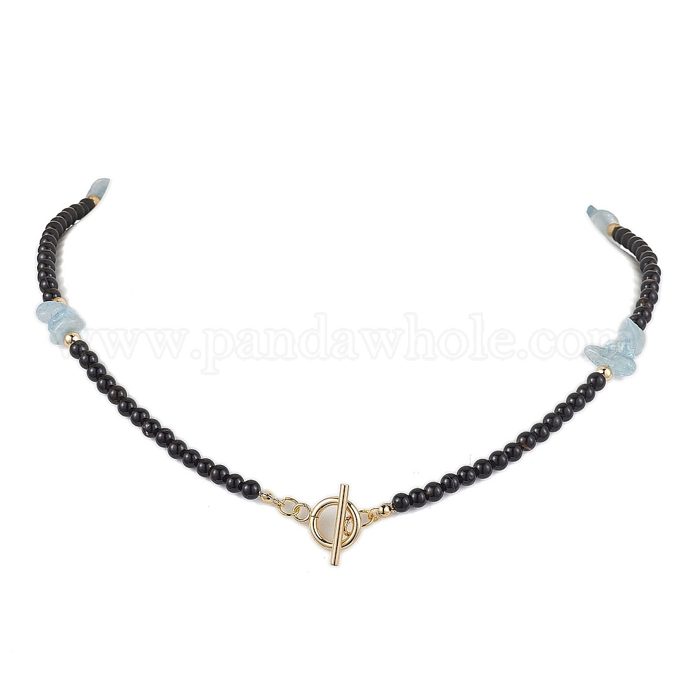 Колье из натурального черного оникса, естественные ожерелья аквамарин (02TD3A)