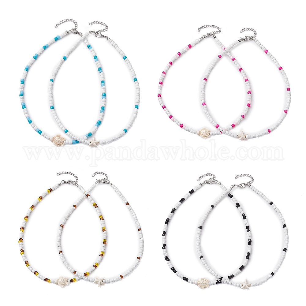 2 шт. летние пляжные ожерелья из стеклянного бисера, ожерелья из синтетической бирюзы черепах и морских звезд