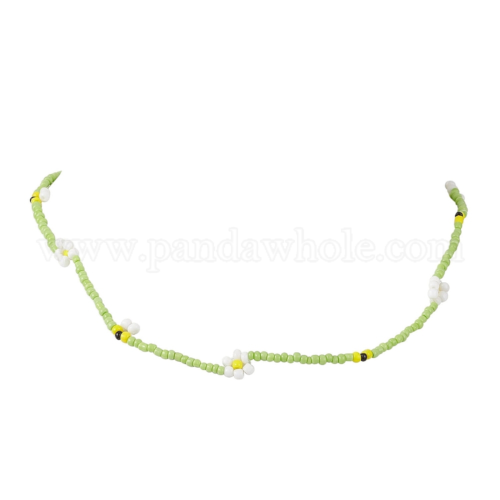 Стеклянные бусины бисерные цветочные ожерелья, с 304 хвостовыми цепями из нержавеющей стали, цвет нержавеющей стали