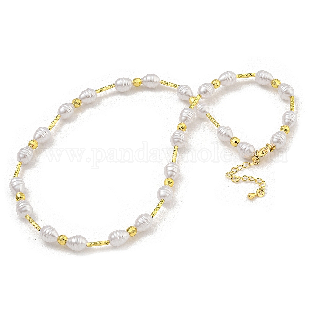 • Настоящее золото 18K Стойка для покрытия латунь и АБС пластик жемчужные бусины бисерные ожерелья для женщин, без кадмия и без свинца, долговечный, реальный 18 k позолоченный, 17.91 дюйм (45.5 см)