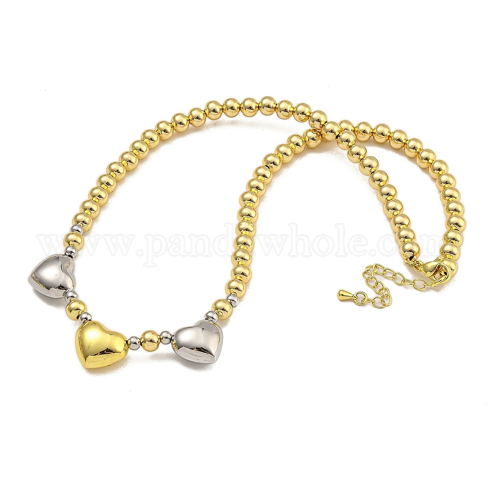 Ожерелья из латуни с круглыми и сердечными бусинами для женщин, без кадмия и без свинца, долговечный, платина