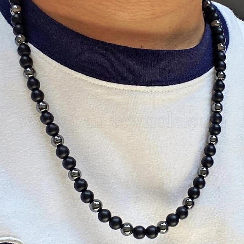 Круглые синтетические немагнитные гематитовые ожерелья для мужчин, с пряжками из нержавеющей стали