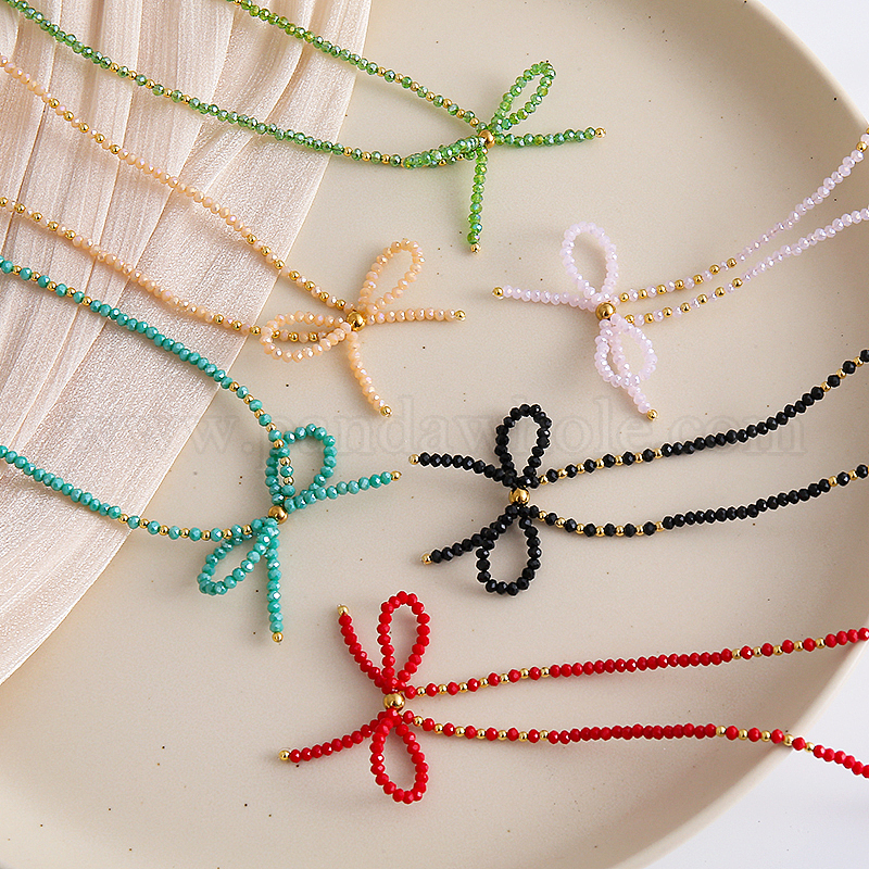 Ожерелья из стеклянных бусин Feaceted Rondelle, Невыцветающие ожерелья-банты ручной работы для женщин