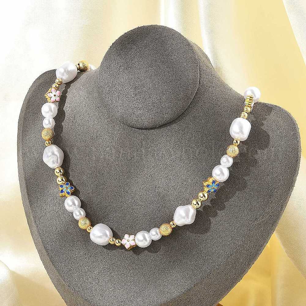 Ожерелья из латуни и АБС-пластика с жемчужными бусинами, с эмалью, без свинца и без кадмия, долговечный, стойки покрытие