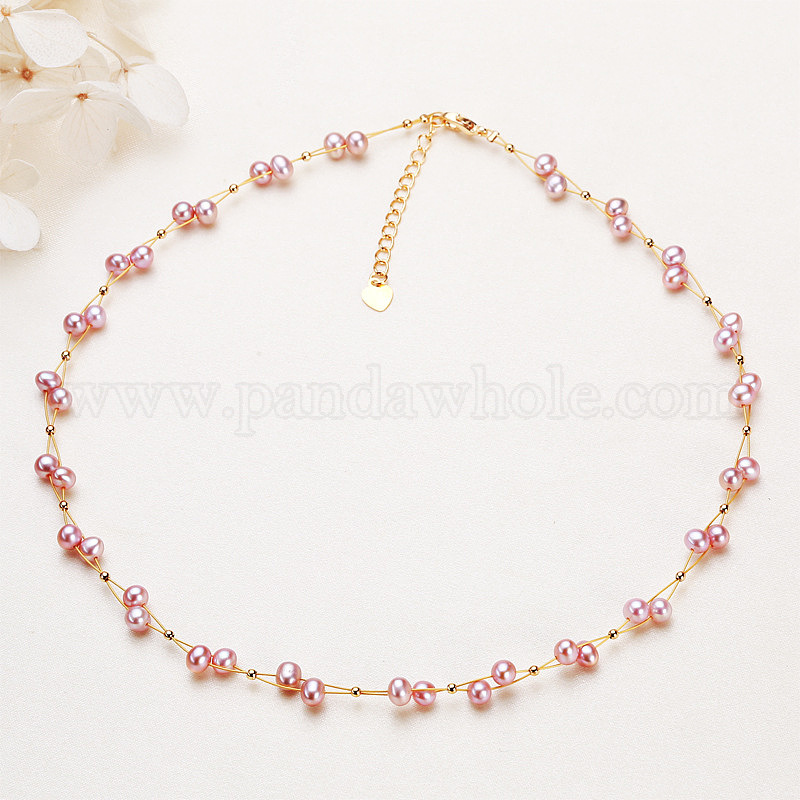 Ожерелья ручной работы из латуни и натурального круглого пресноводного жемчуга, увядшая роза