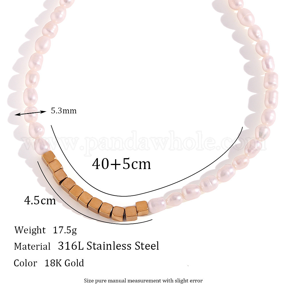 Модные ожерелья из натурального пресноводного жемчуга и кубической нержавеющей стали для женщин