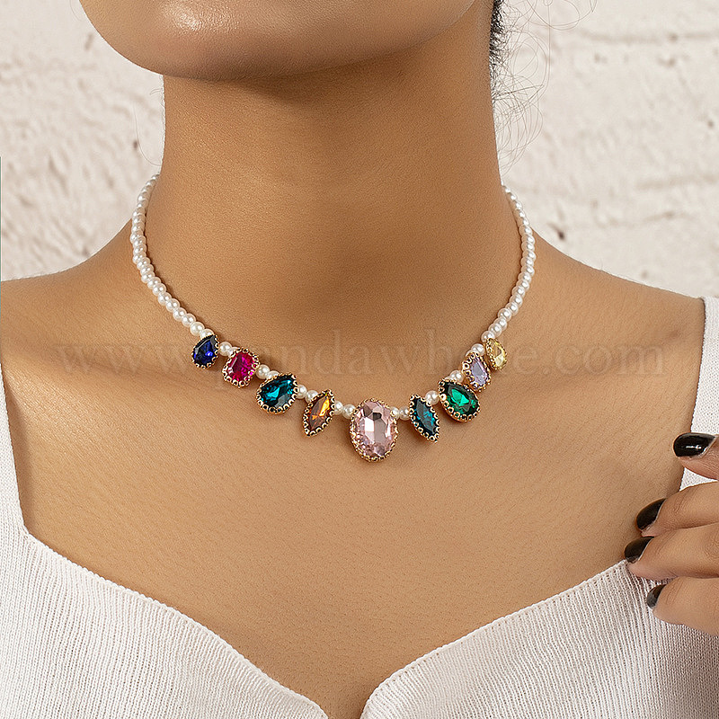 Ожерелья из бисера из сплава горного хрусталя и белого искусственного жемчуга, для украшения свитера, французские ретро ожерелья