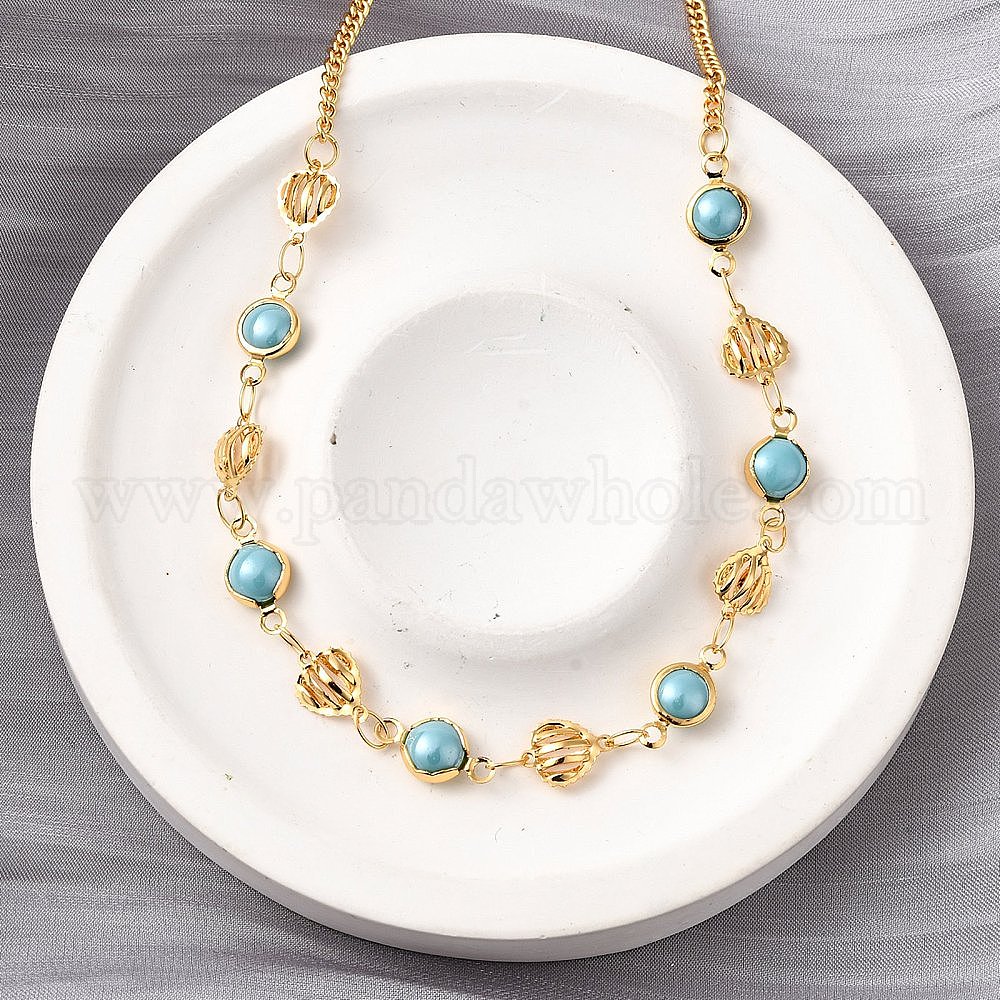 304 из нержавеющей стали Снаряженная цепи ожерелья, круглые стеклянные бусины ожерелья для женщин