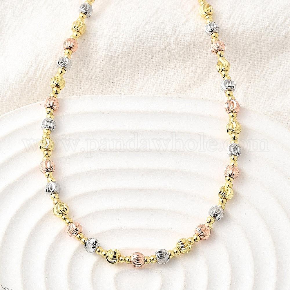 4мм трехцветные латунные текстурированные круглые бусины ожерелья для женщин, без кадмия и без свинца, стойки покрытие, долговечный