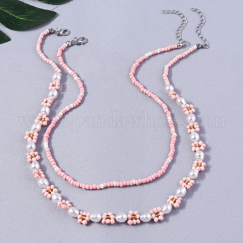 Комплекты ожерелий из стеклянных бусин с пластиковыми жемчужинами для женщин, платина