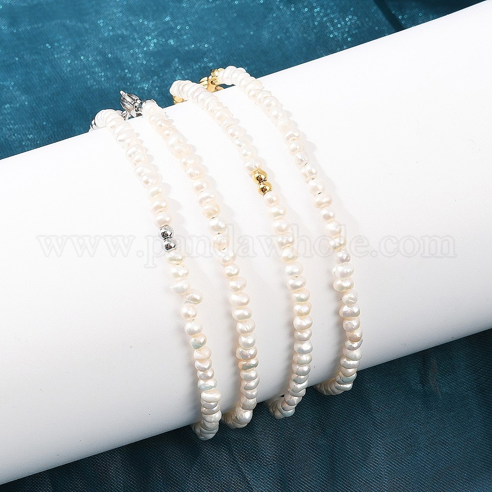 Ожерелья из натурального пресноводного жемчуга, картофеля и латунных бусин, без кадмия и без свинца, стойки покрытие, долговечный, белые