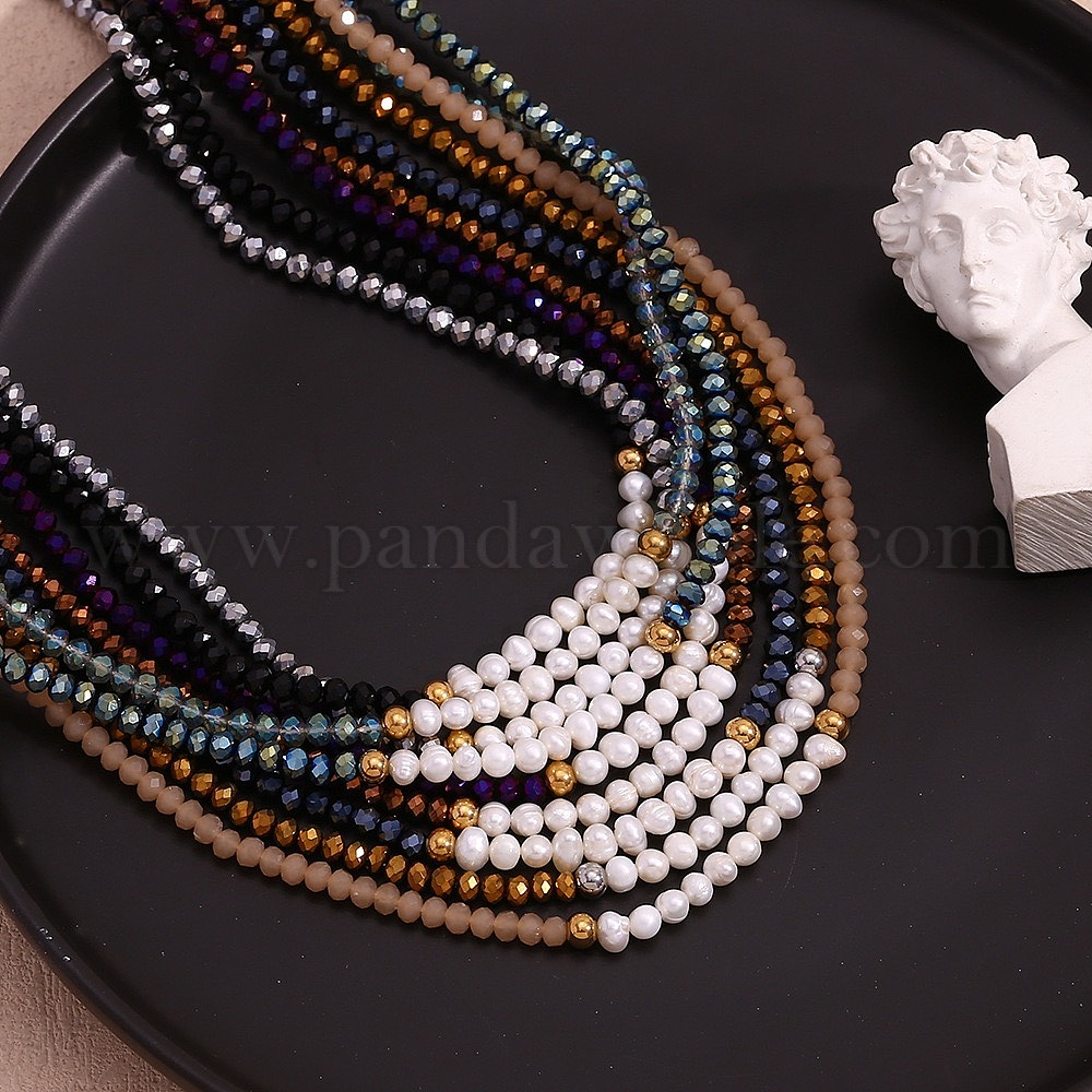 Модные ожерелья из натурального пресноводного жемчуга и граненых стеклянных бусин-ронделей для женщин, с концевыми цепями из нержавеющей стали, реальный 18 k позолоченный