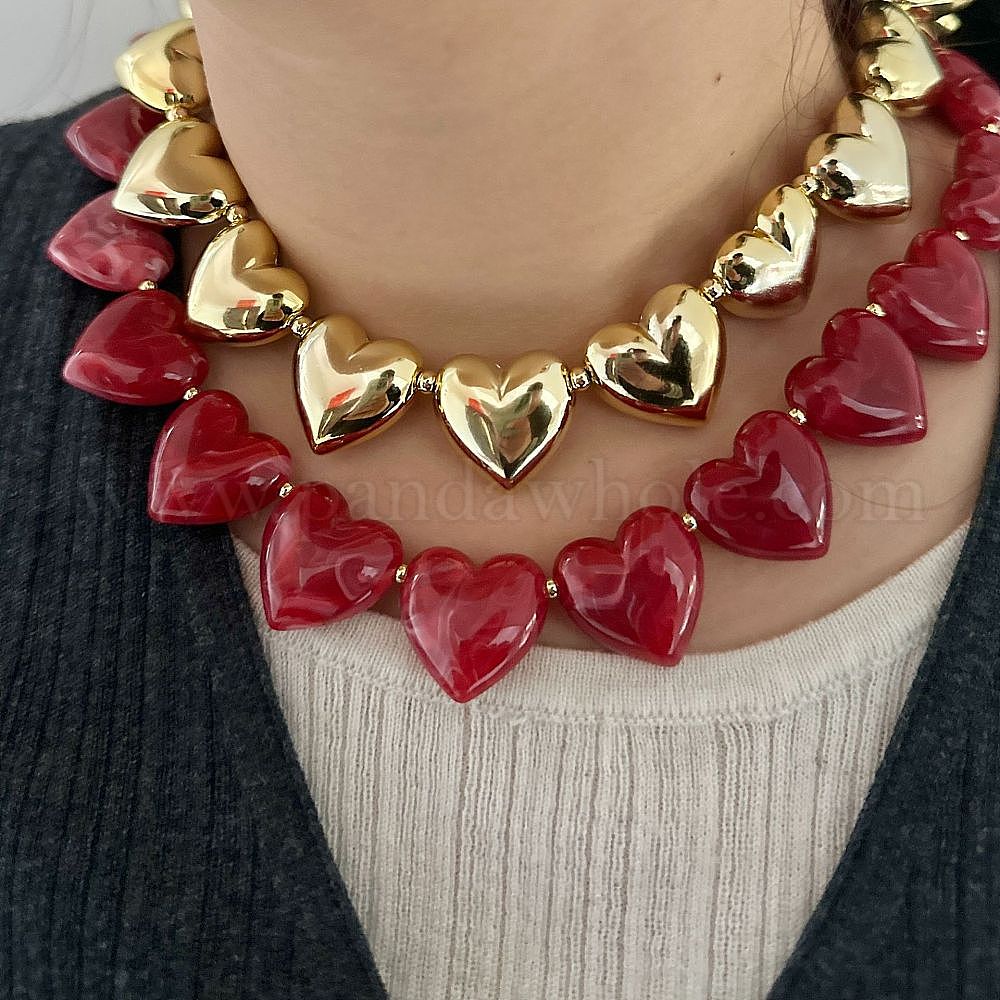 Женские ожерелья из пластиковых и смоляных бусин в форме сердца, золотые