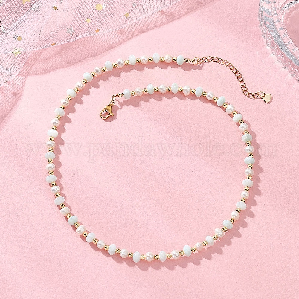 Ожерелья из бусин-ронделей из натурального жемчуга и ракушек, с 304 удлинителями цепи из нержавеющей стали, золотые