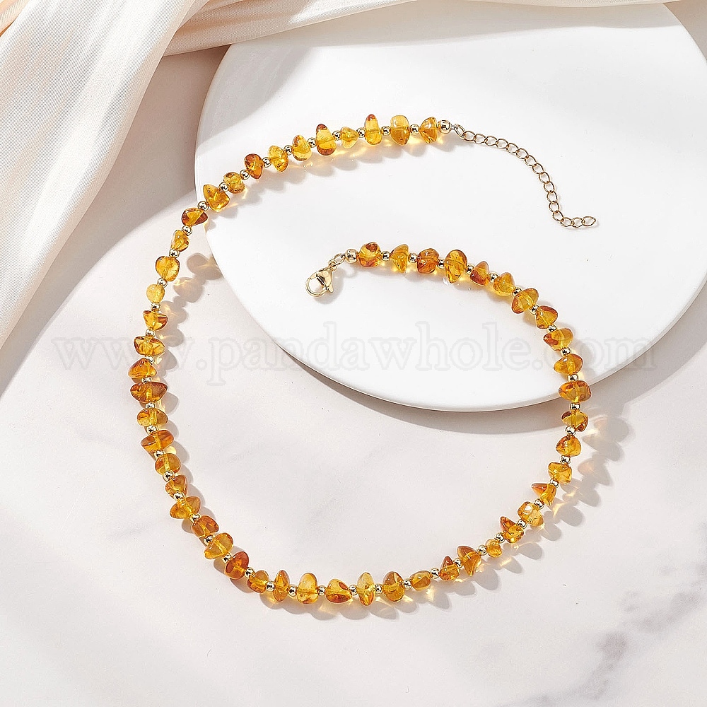 Ожерелья из натуральных янтарных бус для женщин, золотые