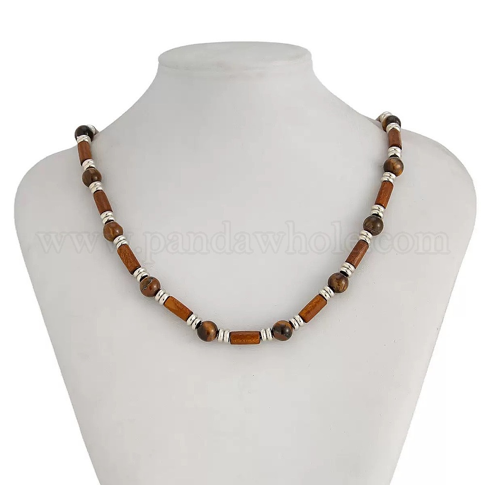 Регулируемые винтажные богемные мужские круглые бусы из натурального тигрового глаза и древесины колонного цвета, платина