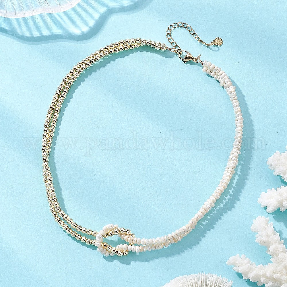 • Золотой Ожерелье из натуральных пресноводных жемчужных бусин из синтетического немагнитного гематита с гальваническим покрытием для женщин., белые, золотые, 2 дюйм (15.16 см)