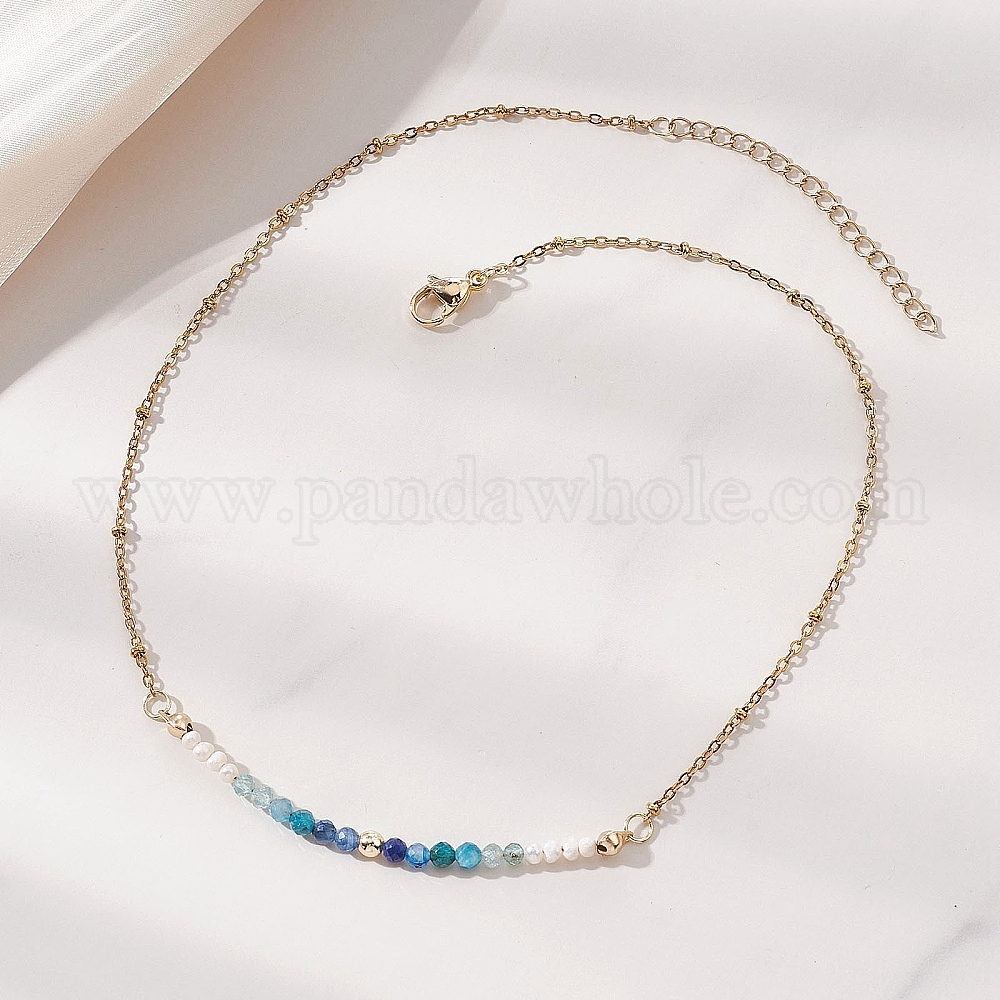 3.5мм ожерелье из граненых круглых бусин из натурального смешанного камня и жемчуга., с 304 сателлитными цепями из нержавеющей стали, золотые