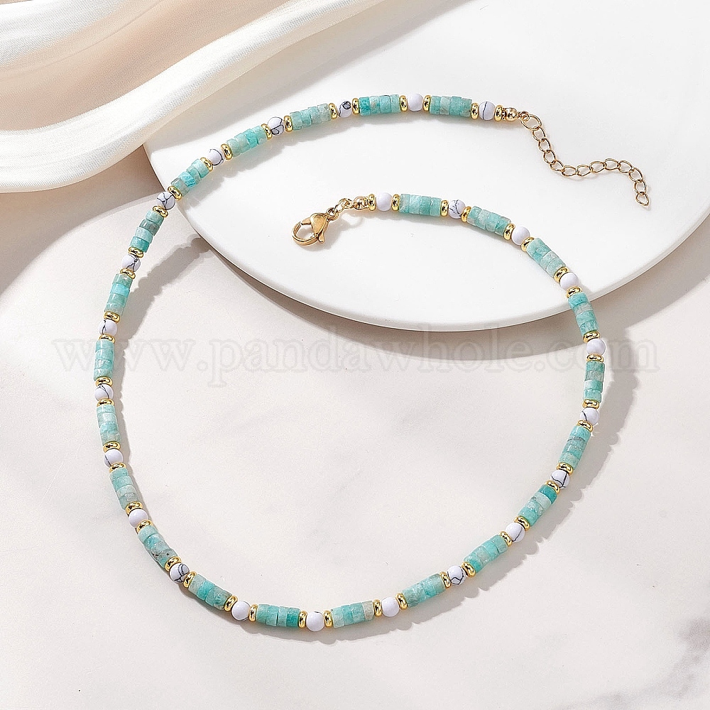 Круглые бусы-хейши из синтетического говлита и натурального камня для женщин., с 304 удлинителем цепи из нержавеющей стали, золотые