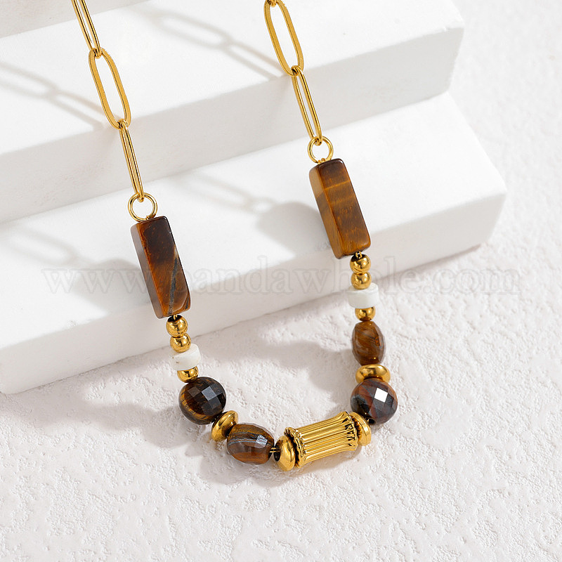 Натуральный кубовидный бисер из тигрового глаза 304 цепочка из нержавеющей стали в виде скрепки для женщин