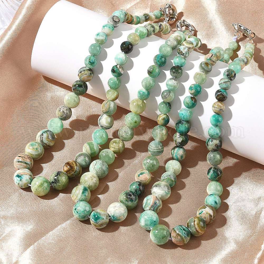 Ожерелья из натуральной зеленой яшмы с градуированными круглыми бусинами, с пружинными застежками из платиновой латуни