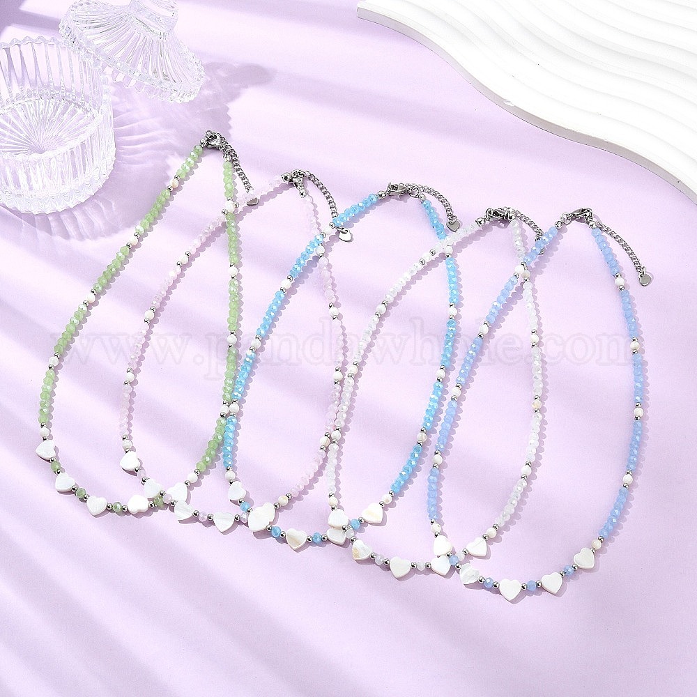 • (52) Непрозрачная лаванда Натуральные пресноводные ракушки и стеклянные бусы для женщин, бабочка и рондель, разноцветные, 17.48 дюйм (44.4 см)