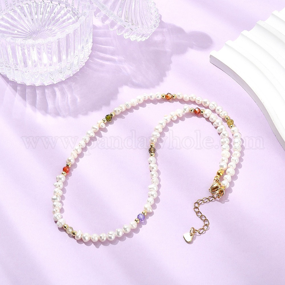 Ожерелья из натурального культивированного пресноводного жемчуга и кубического циркония для женщин, круглый и картофельный