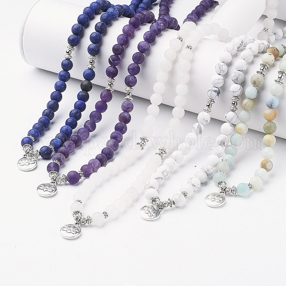 Драгоценный камень бисера ожерелья, Также для 4 -оплетов-обручальных браслетов, С бусинами из сплава и плоской круглой подвеской