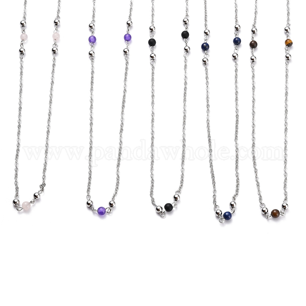 304 ожерелья из нержавеющей стали бисером, с круглыми бусинами из натуральных и синтетических драгоценных камней и тросовыми цепями