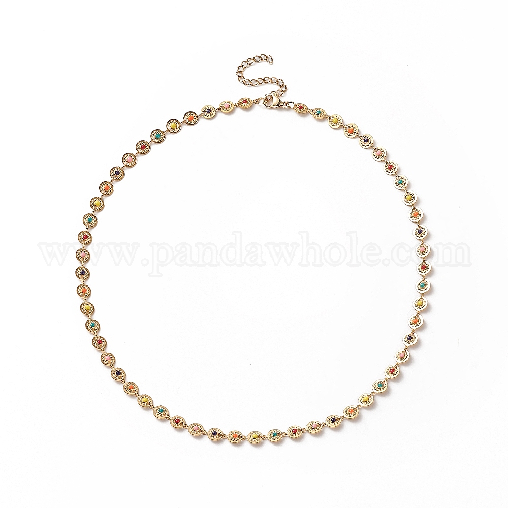 • Золотой Цепочка из разноцветных эмалевых звеньев, 304 женские украшения из нержавеющей стали, золотые, 17.52 дюйм (44.5 см)
