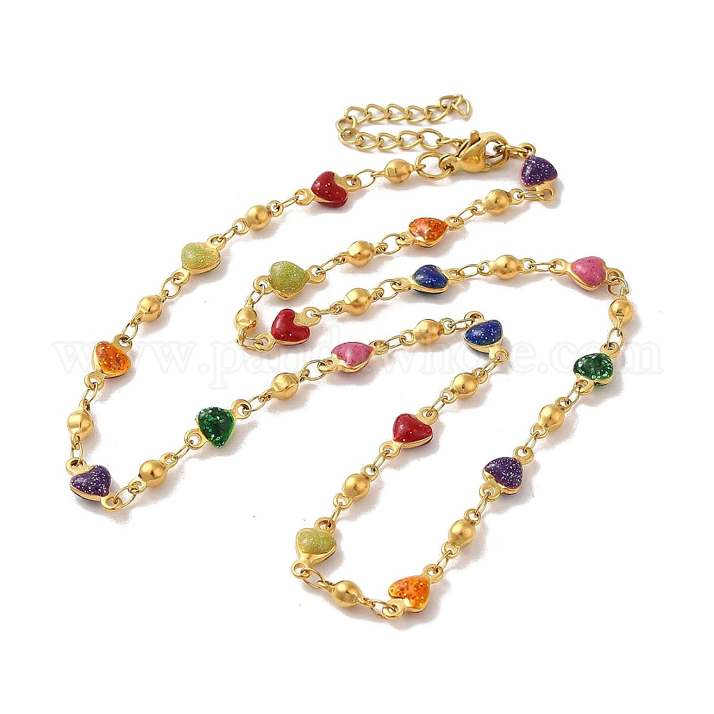 304 ожерелье из нержавеющей стали, Ожерелье с разноцветными эмалированными сердечками