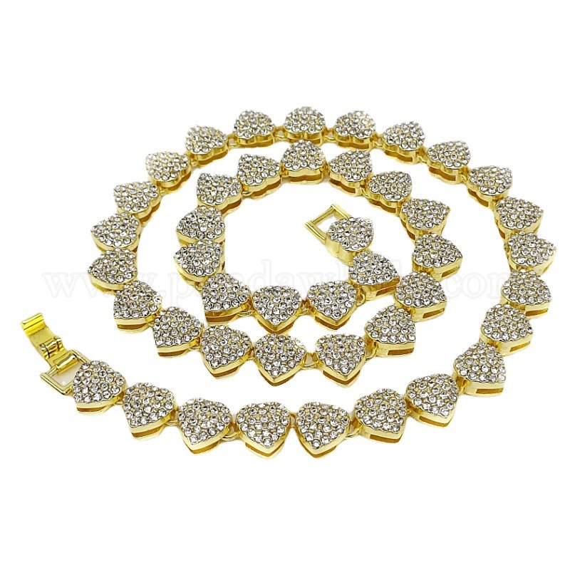 Ожерелья-цепочки из сплава со стеклянными стразами в форме сердца в форме кубинских цепочек