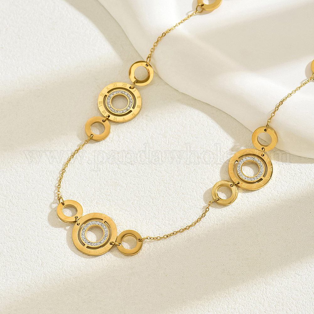 • Золотой Цепочка из нержавеющей стали с кристаллами и стразами, римские цифры, двойное круговое звено, ожерелья для женщин, золотые, 20.28 дюйм (51.5 см)