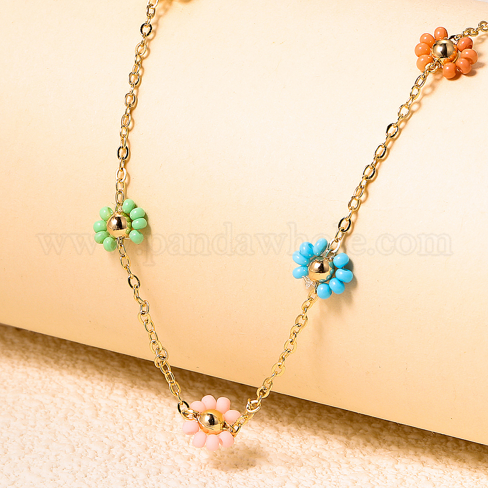 Богемные латунные и пластиковые разноцветные цветочные бусины, цепочки, ожерелья для женщин, повседневная одежда для вечеринок