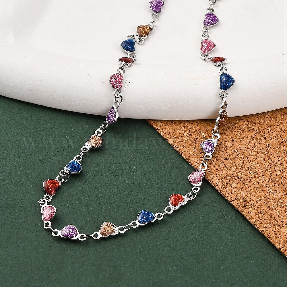 304 ожерелья из нержавеющей стали с цветной эмалью и блестками в форме сердца для женщин