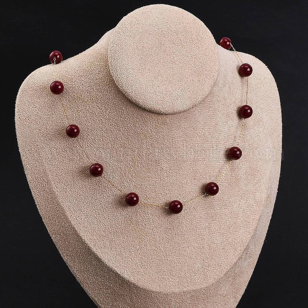 304 ожерелья из нержавеющей стали и круглой натуральной сердолик (окрашенной и нагретой), ионное покрытие (ip)