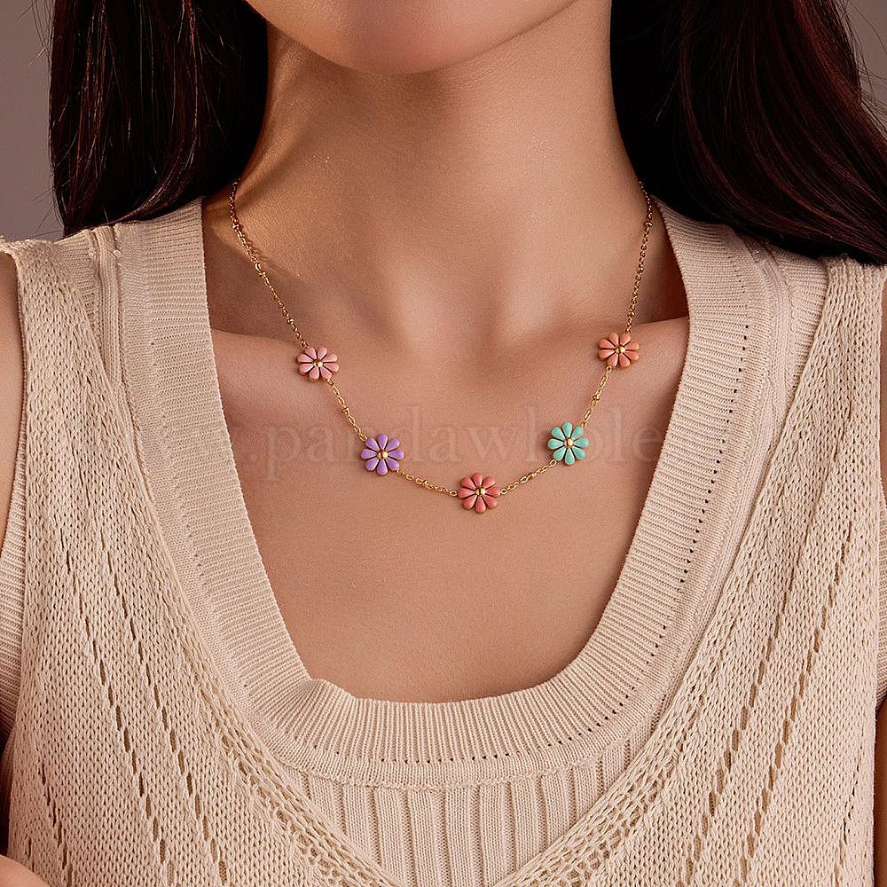 304 ожерелья из нержавеющей стали с эмалированными цепочками в виде цветка маргаритки для женщин, реальный 18 k позолоченный